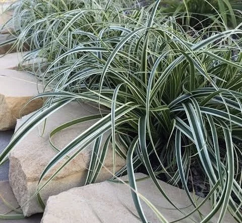 An attractive clumping perennial with a striking grey-green and white striped leaves. Produces delicate flowers on a fine stem followed by berries. Ideal to introduce a contrast with colour and form into a garden. Prefers a sunny to part shade positin in moist well drained soil. Gets to a height of 60cm. They are drought and frost tolerant once established.