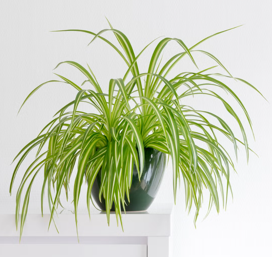 Spider Plant (Chlorophytum comosum) is a popular, easy-care indoor plant known for its arching green leaves with white stripes and charming baby “spiderettes.”