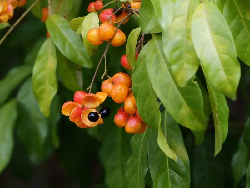A glossy leaved evergreen with small orange fruit that are great for attracting birds. Growing 6-12m in height makes an ideal shade tree. Prefers a sunny to partly shaded position in humus rich, moist, well draining soil.